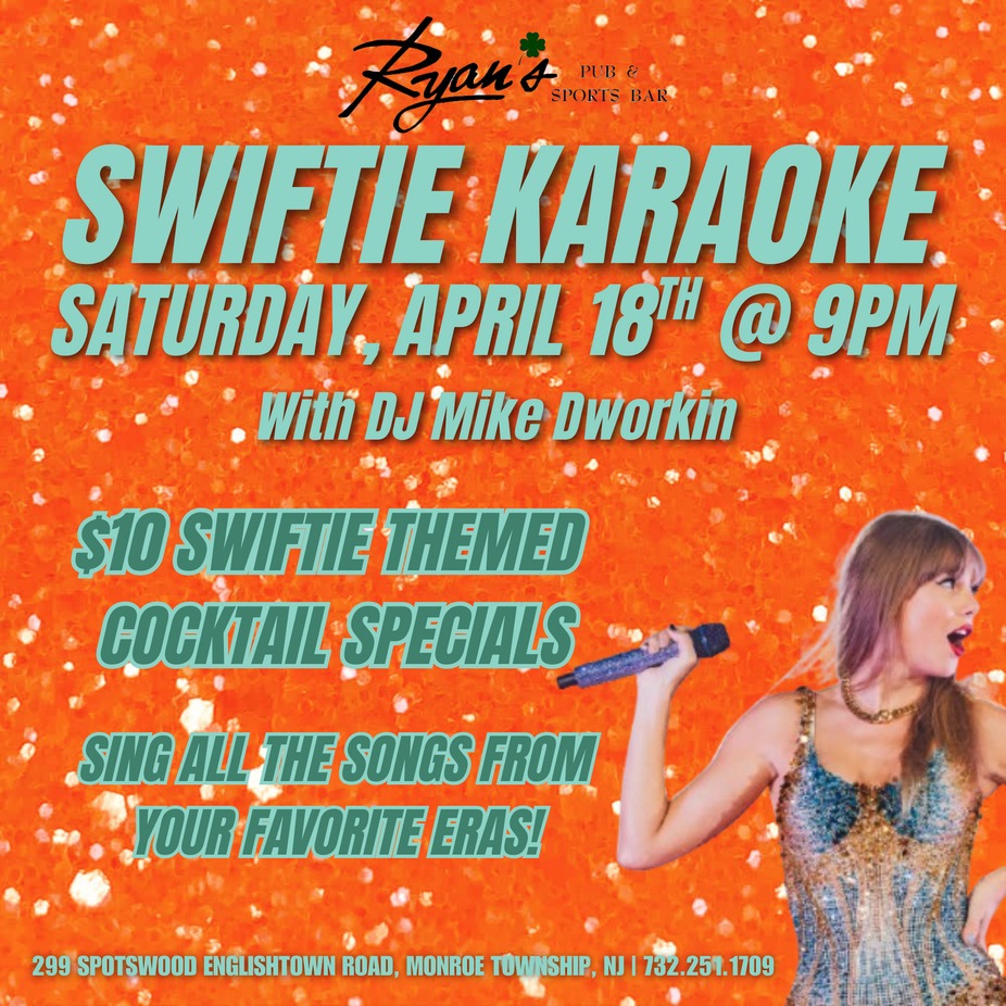 CALLING ALL SWIFTIES! Sing all of your favorite Taylor Eras with us for Swiftie Karaoke Night on Saturday, April 18th!