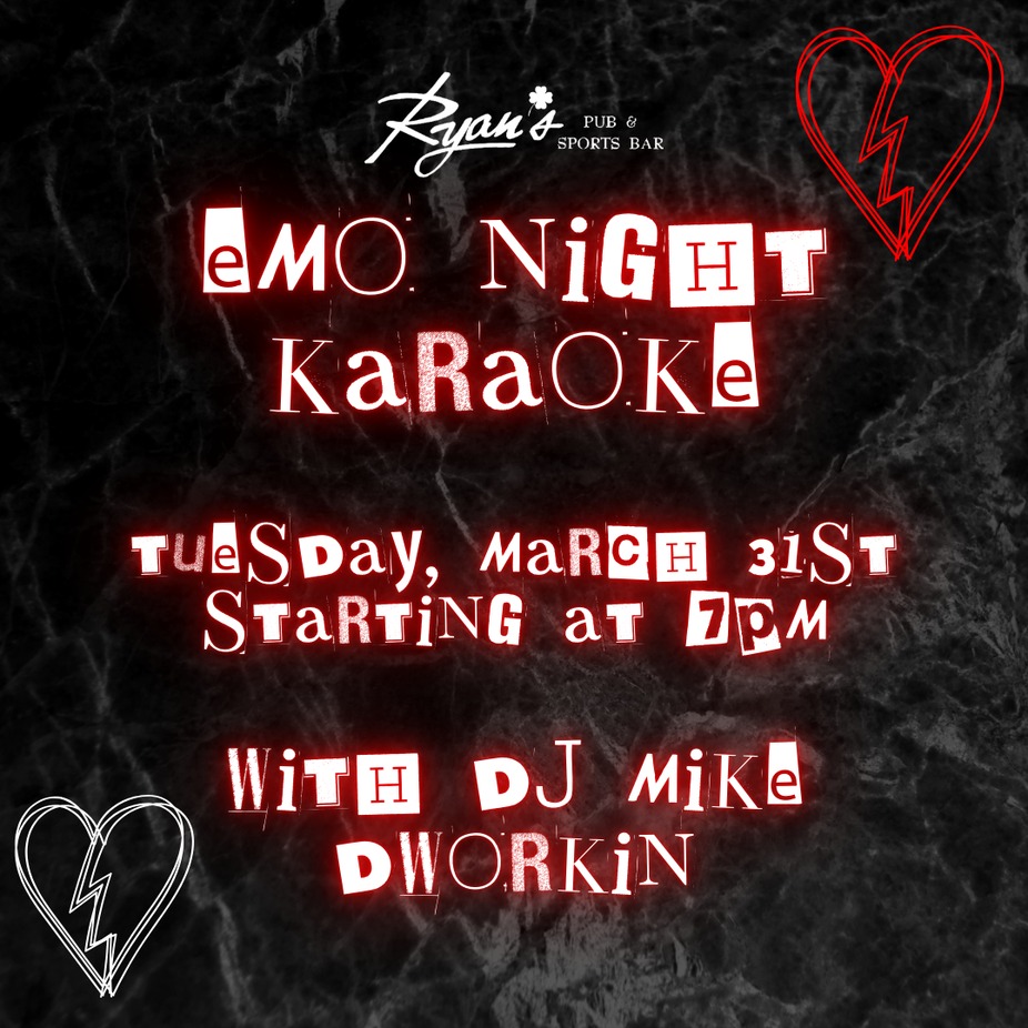 Emo Night Karaoke is March 31st! Come and sing with DJ Mike Dworkin hosting!